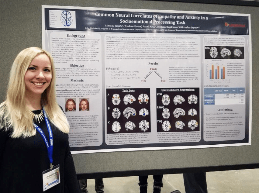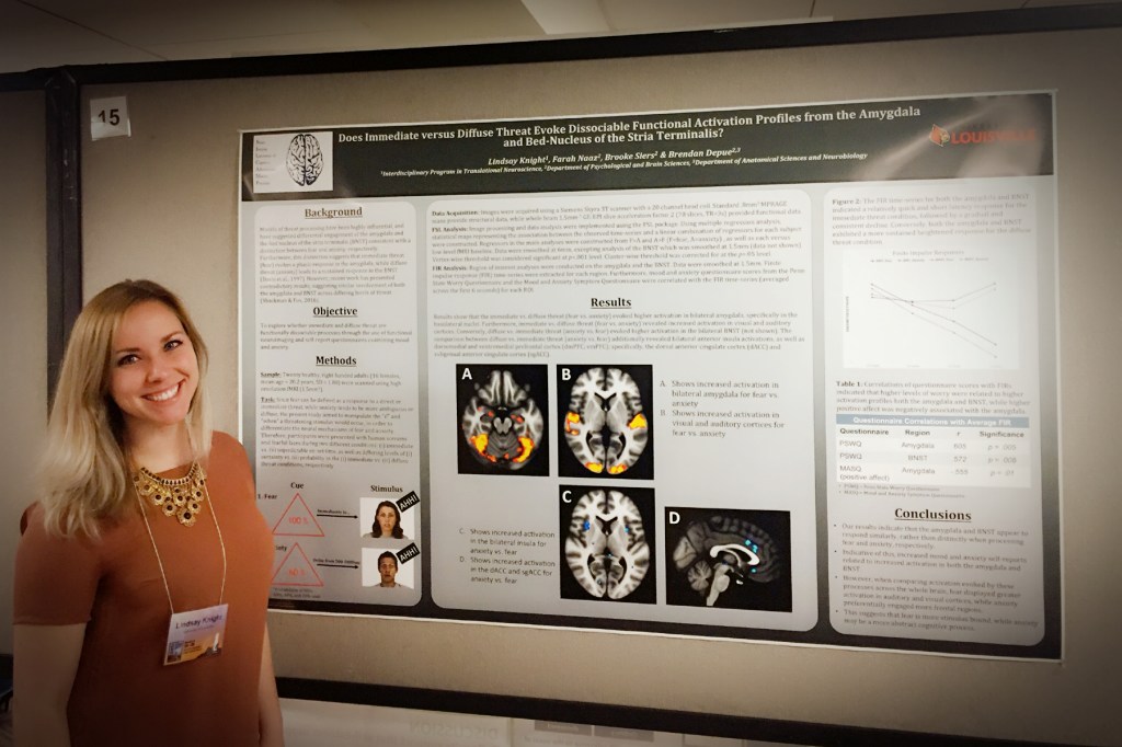 Christmas lab celebration at Couvillion!Monthly gathering of the minds: Neurosurgery Reading group, Holy Grale Restaurant & BarLindsay Knight presenting at Cognitive Neuroscience Society 2018 in Boston, MATeodora Stoica presenting at Cognitive Neuroscience Society 2018 in Boston, MALeonard Faul – Poster competition winner for Neuroscience Day 2017Teodora Stoica receiving the SfN’s Outstanding Trainee Award for community service and research excellence at Neuroscience Day 2017.Lindsay Knight and Teodora Stoica standing up for science, March For Science LouisvilleTeodora Stoica giving a Data Blitz, and blending in with the curtains, Cognitive Neuroscience Society 2017Lindsay Knight presenting in San Francisco, Cognitive Neuroscience Society 2017NILCAMP enjoying sweet San Francisco TreatsFarah Naaz presenting in San Francisco, Cognitive Neuroscience Society 2017NILCAMP in the CNS host hotel – Hyatt Regency San FranciscoLindsay and Leonard goofing around in SF, Cognitive Neuroscience Society 2017Leonard Faul presenting in San Francisco, Cognitive Neuroscience Society 2017The lab that travels together (and gets delayed for 5 hours), stays together!Teodora Stoica giving a talk at GoodWood Brewery on the Human Connectome ProjectTeodora Stoica showing kids how to place correct function stickers on a brain hatLindsay Knight, Brooke Siers and Teodora Stoica during “Get Psyched!” – a science outreach eventUndergrad Leonard Faul presenting at Research!Louisville 2016Undergrad Kathryn Mattingly presenting at Research!Louisville 2016Leonard Faul and Kathryn Mattingly presenting at the Student Research Opportunity Program (SROP) Culminating Poster SessionTeodora during Data Blitz at Neuroscience Day 2016Dr. Depue at Neuroscience Day 2016Teodora presenting in New York, Cognitive Neuroscience Society 2016Lindsay Knight presenting in New York, Cognitive Neuroscience Society 2016Brain Awareness Day 2016 at the Kentucky Science CenterTeodora and Lindsay presenting at Research!Louisville 2015Neurosurgery Shadowing at Frazier Rehab Institute Jewish HospitalWeekly Reading GroupFarah Naaz presenting her poster at Cognitive Neuroscience Society 2014